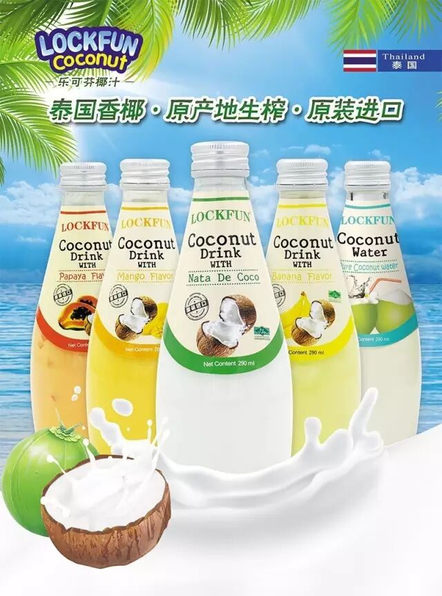 乐可芬椰汁为泰国原装进口,产品优选泰国香椰品种,其工厂来自泰国香椰的主产地安帕洼,采用新鲜椰子肉2小时生榨,并加入了水果和多种维生素,包含原味、芒果、木瓜、香蕉和100%椰清水等五种口味。